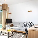 Nesoi Villas Naxos har även balkong och sitthörna samt plattskärms-TV med satellitkanaler och TV med flera kanaler för en mer njutfull vistelse. Förutom soffa har inredningen ljudisolerade fönster. I badrummet finns även en separat toalett och en dusch. Gästerna kan också njuta av bekvämligheten med torktumlare, badlakan och handdukar.